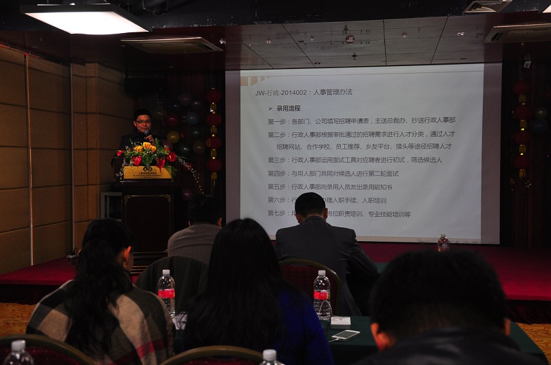 1月23日,奋战在全国各项目部、分公司的工程人员、营销人员相聚在上海康桥凯莱酒店总结企业五年发展历程,共同听取董事会关于第二个五年发展规划的报告。培训会上行政人事部向所有员工讲解了公司各项制度和福利政策,财务部介绍了报销及财务管理制度。通过各项制度培训,使企业发展更加规范、工作更讲程序。