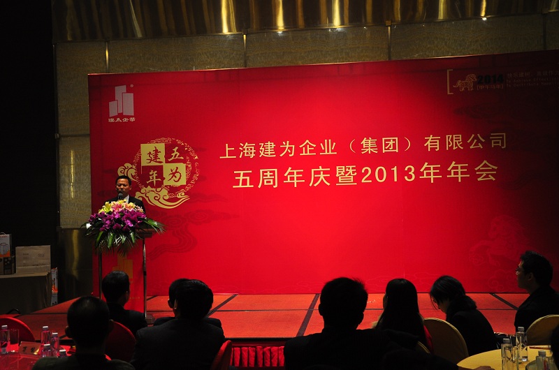 2014年1月25日,上海建为企业(集团)有限公司五周年庆暨2013年年会在欢声笑语中圆满完成。此次年会共持续3天,包括企业内训、高管沟通反思会、文体比赛、总结表彰会、文艺表演、欢庆晚宴等。