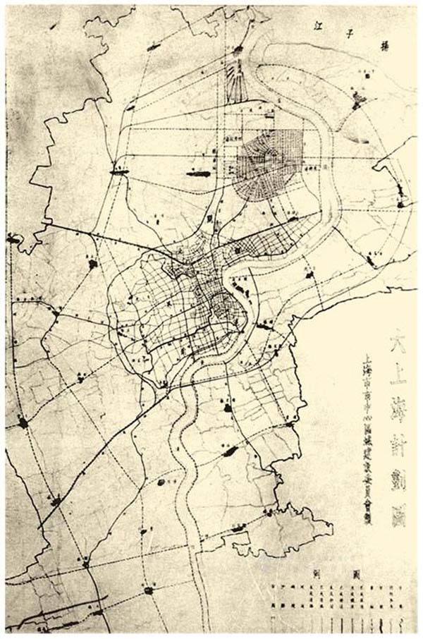 • 1929年7月,上海特别市政府第123次会议通过了《大上海计划》,将北邻新商港、南接租界、东近黄浦江,地势平坦的江湾一带(约7000亩合460公顷土地)划为市中心区域。