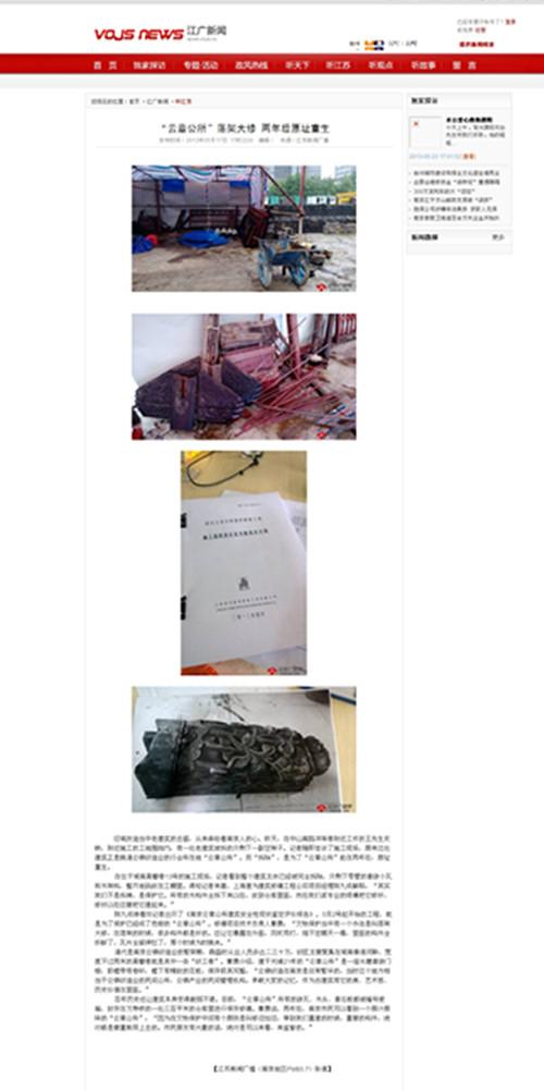 我司承建的“南京云章公所”获媒体好评